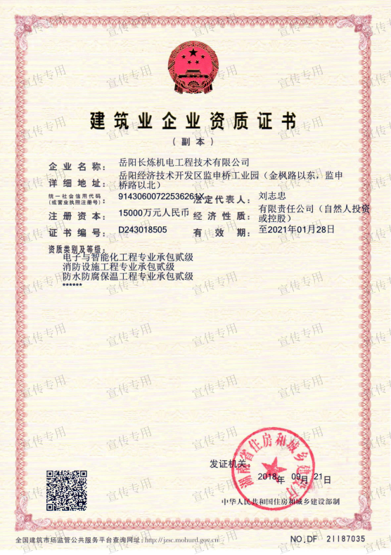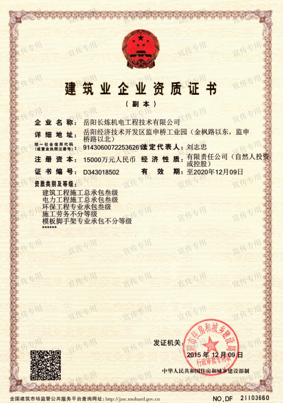 石油化工工程、機電工程、建筑工程、電力工程、消防設(shè)施工程、防水防腐保溫工程、環(huán)保工程施工.消防設(shè)施維護保養(yǎng)檢測工程、污染治理設(shè)施運行服務(wù)工程、電子與智能化工程、雷電防護裝置檢測工程、模板腳手架工程、各類施工勞務(wù)作業(yè):